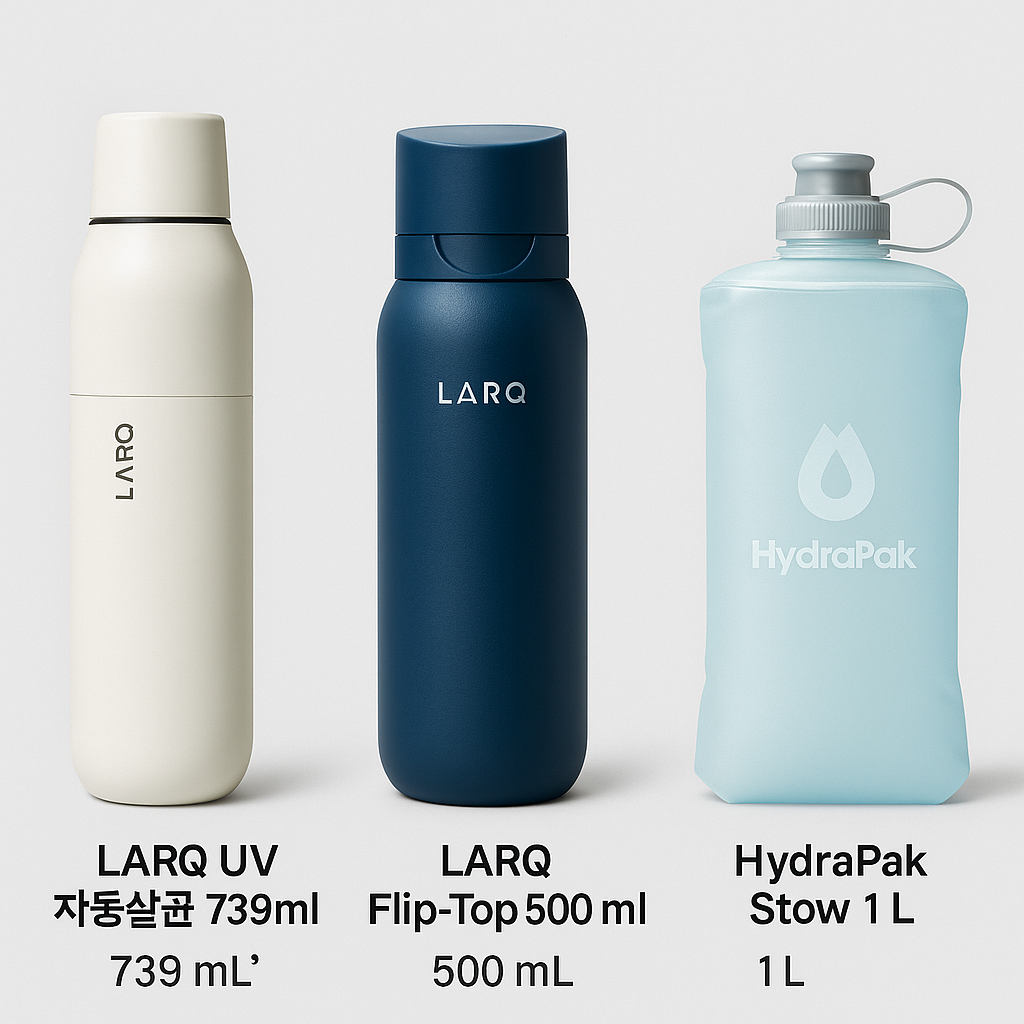 | LARQ Flip‑Top 500 ml | UV‑C 살균·간편 뚜껑 | 500 ml | 휴대성·자동살균·BPA‑free | ₩102,900 | 제품 보기 |